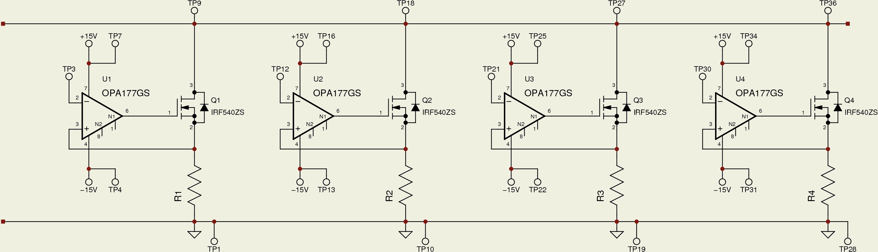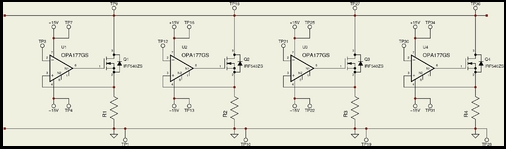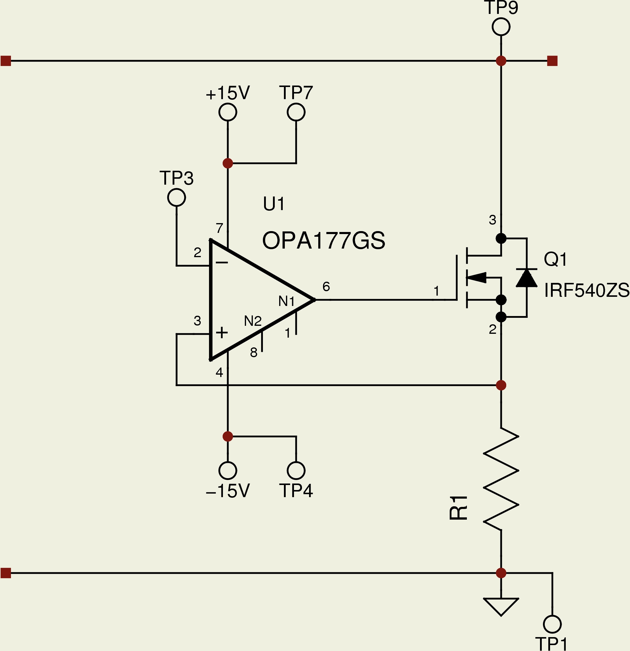 The op-amp power and positive-input traces are running parallel on the