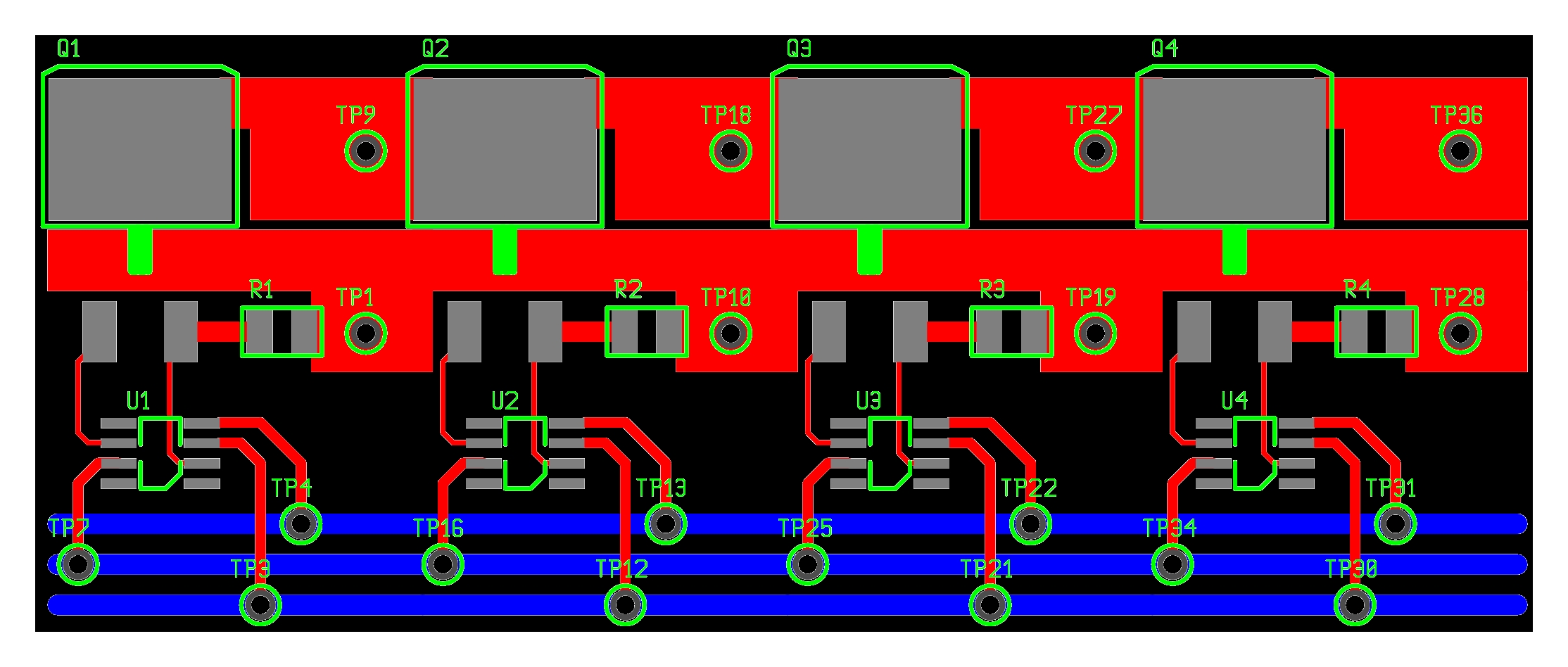 In the load-cell layout the two high current traces are running